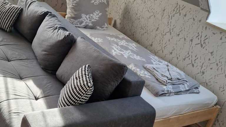 Die Ferienwohnung umfasst ein Schlafzimmer, ein Wohnzimmer mit einem Flachbild-TV und eine gut ausgestattete Küche, die über einen Kühlschrank und einen Ofen verfügt. Zudem gibt es ein Badezimmer mit einer Badewanne. Ein Balkon mit Bergblick lädt zum Verweilen ein. Handtücher und Bettwäsche werden bereitgestellt.