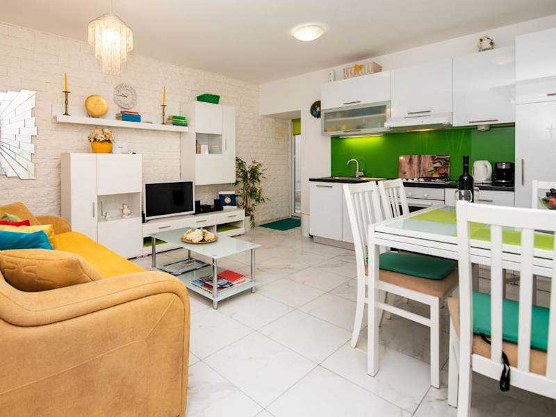 Das Apartment Dea wurde im Jahr 2012 renoviert und bietet eine helle und stilvolle Einrichtung. Die modernen Möbel und die geschmackvolle Dekoration schaffen eine angenehme Atmosphäre. Das klimatisierte Apartment verfügt über einen Balkon, auf dem Sie die warmen Abende genießen können. Im geräumigen Wohnzimmer finden Sie ein LCD-Kabel-TV und ein bequemes Schlafsofa. Die voll ausgestattete Küche ermöglicht es Ihnen, Ihre eigenen Mahlzeiten zuzubereiten. Das Badezimmer ist mit einer Dusche und einer Waschmaschine ausgestattet, um Ihren Aufenthalt so angenehm wie möglich zu gestalten. Kostenloses WLAN steht Ihnen im gesamten Apartment zur Verfügung.