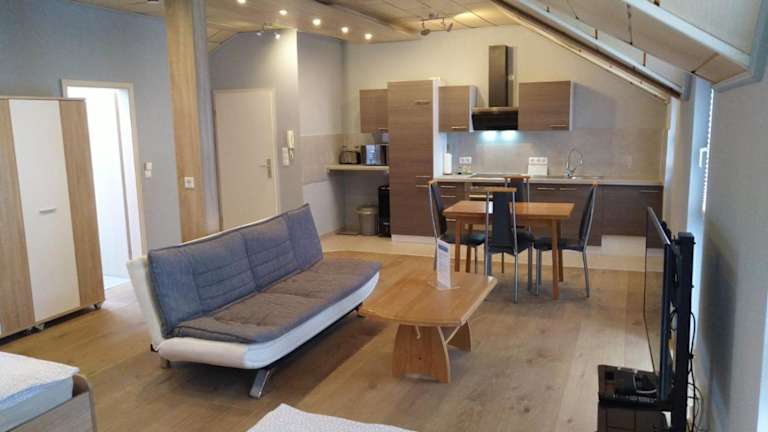 Das Apartment besteht aus einem Schlafzimmer, einem Wohnzimmer und einer voll ausgestatteten Küche mit Kühlschrank und Kaffeemaschine. Das Badezimmer ist mit einer Dusche und einem Haartrockner ausgestattet. Handtücher und Bettwäsche werden bereitgestellt.