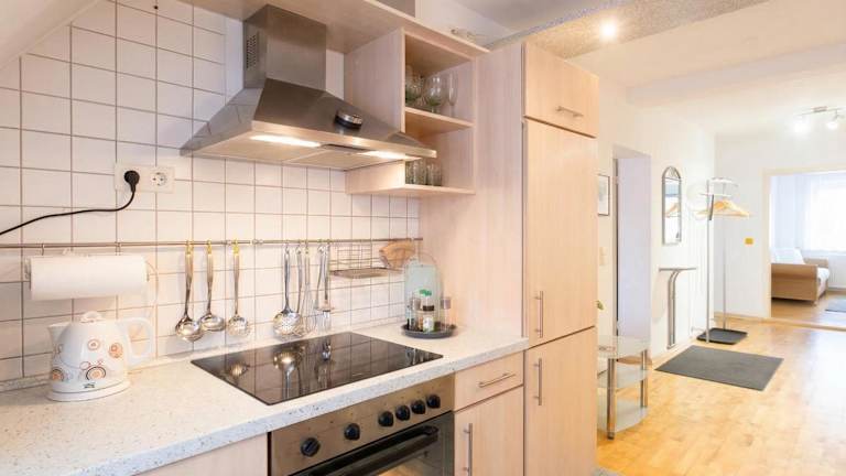 Die Ferienwohnung umfasst 2 Schlafzimmer, ein Wohnzimmer sowie eine voll ausgestattete Küche mit Kühlschrank und Kaffeemaschine. Des Weiteren verfügt die Unterkunft über ein Badezimmer mit Badewanne oder Dusche und kostenlosen Pflegeprodukten. Die Ferienwohnung ist ein Nichtraucherzimmer.