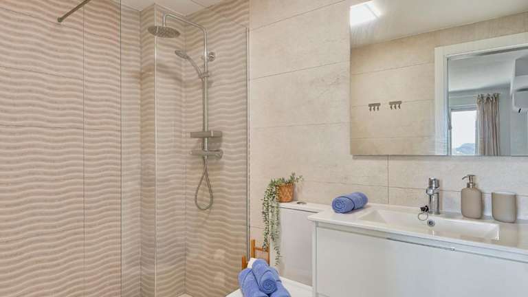 Die Wohnung verfügt über 2 Schlafzimmer, eine Küche mit Kühlschrank und Geschirrspüler sowie 3 Badezimmer, die mit einer Dusche, einem Haartrockner und einer Waschmaschine ausgestattet sind. Ein TV ist ebenfalls vorhanden.