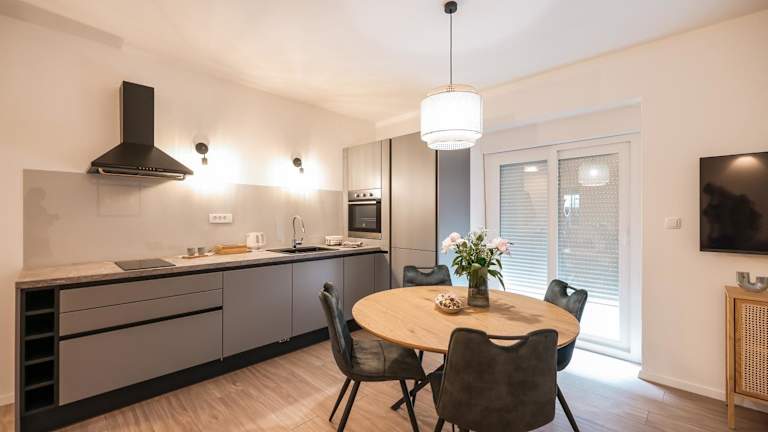 Die Ferienwohnung verfügt über 2 Schlafzimmer, ein Wohnzimmer, eine voll ausgestattete Küche mit Kühlschrank und Kaffeemaschine sowie ein Badezimmer mit Badewanne oder Dusche und kostenlosen Pflegeprodukten. Handtücher und Bettwäsche werden bereitgestellt.
