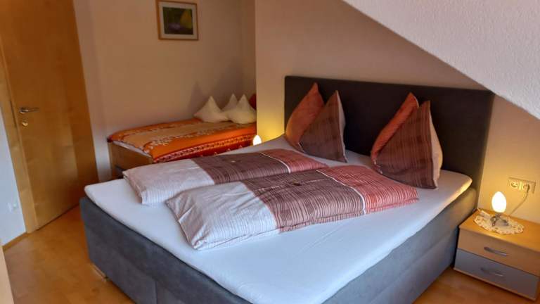 Die Ferienwohnung umfasst 2 Schlafzimmer, ein Wohnzimmer, einen Flachbild-TV und eine gut ausgestattete Küchenzeile mit Kühlschrank und Geschirrspüler. Ein Balkon mit Bergblick sowie ein Badezimmer mit Dusche sind ebenfalls vorhanden. Handtücher und Bettwäsche werden bereitgestellt.