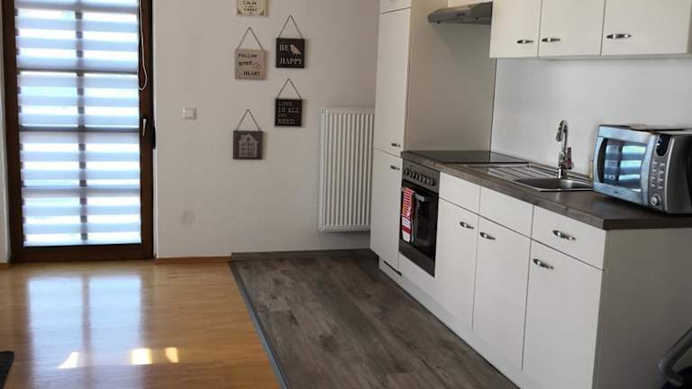 Die voll ausgestattete Küche der Ferienwohnung ermöglicht die Zubereitung eigener Mahlzeiten, ausgestattet mit einem Kühlschrank und einer Kaffeemaschine. Es sind keine Informationen über weitere Verpflegungsmöglichkeiten vorhanden.