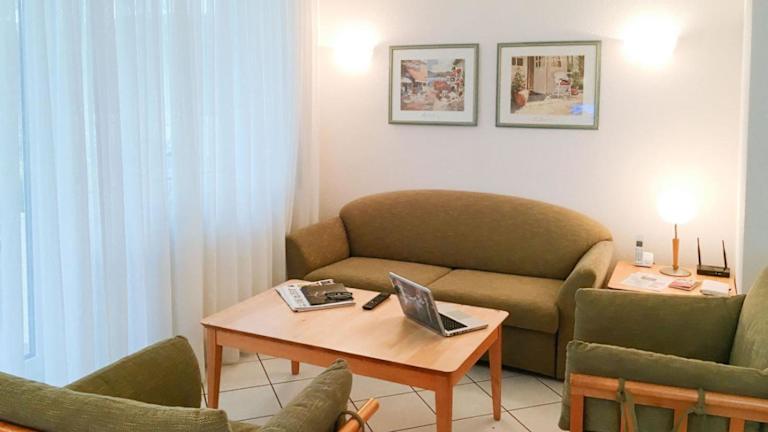 Das Apartment Fridolin bietet ein gemütliches Schlafzimmer, ein geräumiges Wohnzimmer, eine voll ausgestattete Küche mit Kühlschrank und Kaffeemaschine sowie ein Badezimmer mit Dusche. Handtücher und Bettwäsche werden gestellt, sodass Sie sich um nichts kümmern müssen. Das Apartment ist komfortabel und bietet alles, was Sie für einen angenehmen Aufenthalt benötigen.