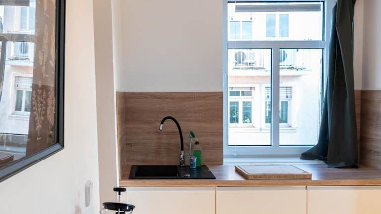 Das Apartment verfügt über ein Schlafzimmer, eine vollständig ausgestattete Küche mit Kühlschrank und Geschirrspüler sowie ein Badezimmer mit Dusche, Haartrockner und Waschmaschine. Handtücher und Bettwäsche werden zur Verfügung gestellt.