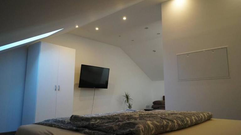 Die Ferienwohnung verfügt über ein Schlafzimmer, einen Flachbild-TV und eine Küche, die mit einem Kühlschrank und einem Ofen ausgestattet ist. Handtücher und Bettwäsche werden bereitgestellt.
