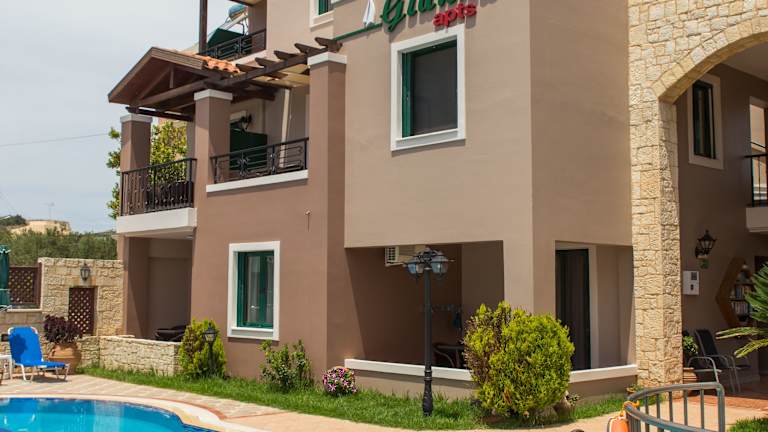 Das Hotel Gianna Apartments bietet einen mit Mosaik gefliesten Pool und ein separates Kinderbecken, die beide eine willkommene Abkühlung an heißen Tagen bieten. In der Umgebung gibt es auch verschiedene Freizeitaktivitäten, wie zum Beispiel Wassersport am Strand oder Ausflüge in die malerischen Dörfer der Region.