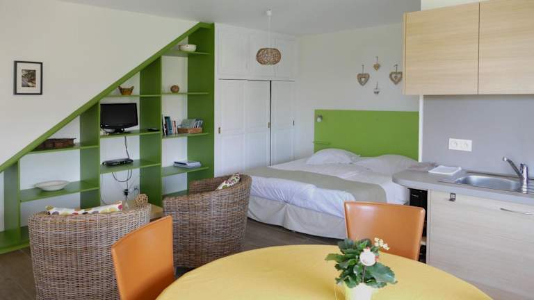 Das Studio im Gîte l'Agapé zeichnet sich durch sein modernes Dekor und seine gemütliche Atmosphäre aus. Es ist schallisoliert, um eine ruhige und entspannte Umgebung zu bieten. Das Studio verfügt über einen LCD-TV, kostenfreies WLAN und eine gut ausgestattete Küchenzeile mit einem Ofen, einem Herd und einem Kühlschrank. Im Badezimmer finden Sie eine Dusche und einen Haartrockner. Genießen Sie von Ihrem Studio aus den herrlichen Blick auf die umliegenden Weinberge.