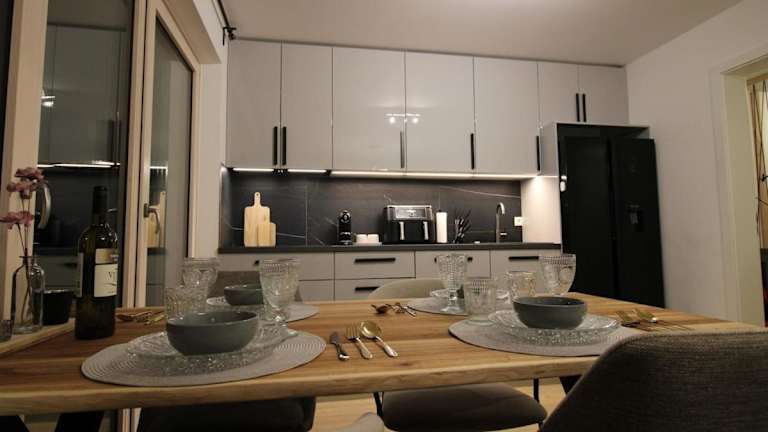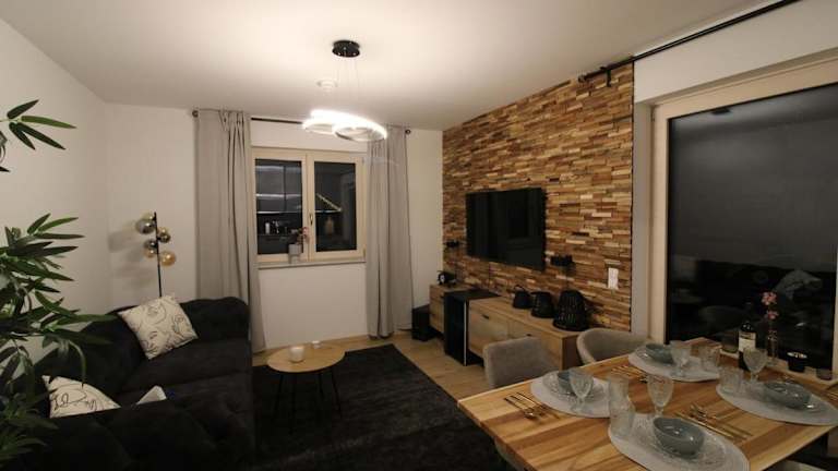 Apartment Grey am See mit Zugang bietet komfortable Übernachtungsmöglichkeiten mit kostenlosem WLAN und einem Garten zur Erholung. Die Unterkunft zeichnet sich durch einen kostenlosen Privatparkplatz aus.