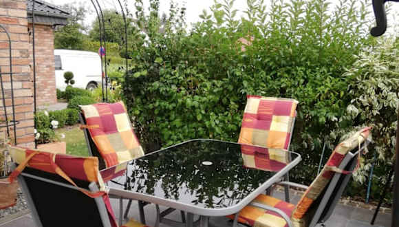 Das Apartment Hasselstrasse bietet ein gemütliches Schlafzimmer mit bequemen Betten und ausreichend Platz für eine erholsame Nacht. Das moderne Badezimmer ist mit allem ausgestattet, was Sie für Ihren Aufenthalt benötigen, einschließlich frischer Handtücher. Das Apartment verfügt auch über einen Flachbild-TV im Wohnbereich, einen Essbereich und eine voll ausgestattete Küche, in der Sie Ihre eigenen Mahlzeiten zubereiten können. Von der Terrasse aus haben Sie einen schönen Blick auf den Garten und können dort entspannen.