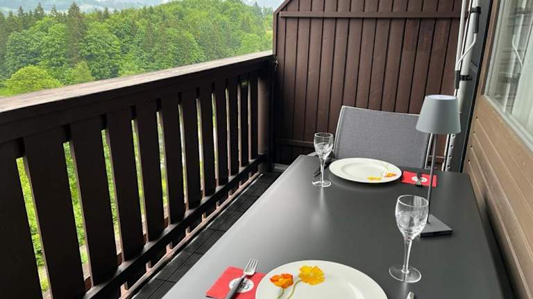 Das Apartment ist ausgestattet mit Bettwäsche, Handtüchern, einem Flachbild-TV, einem Essbereich und einer voll ausgestatteten Küchenzeile. Zusätzlich verfügt die Unterkunft über einen Balkon mit Blick auf die Berge.
