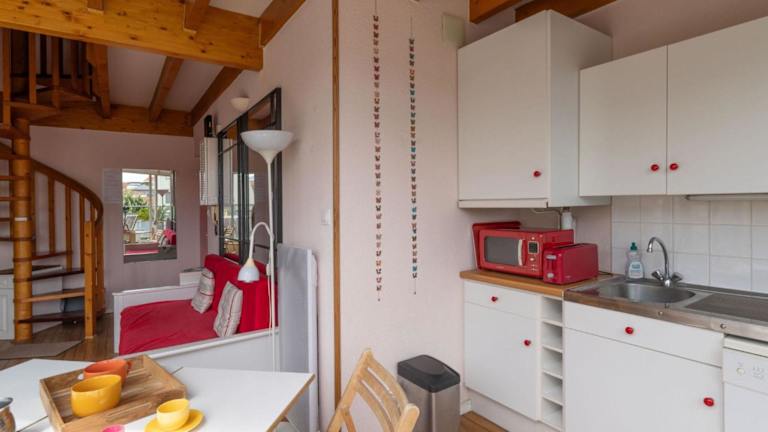 Die Wohnung verfügt über ein Schlafzimmer, eine voll ausgestattete Küche mit Kühlschrank und Geschirrspüler, sowie ein Badezimmer mit Dusche, Haartrockner und Waschmaschine. Zudem ist ein TV vorhanden.