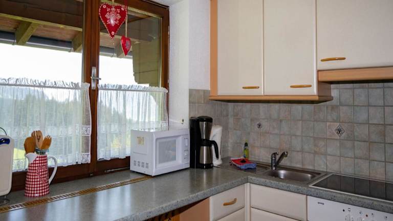 Die Ferienwohnung umfasst zwei Schlafzimmer, ein Wohnzimmer mit einem Flachbild-TV und eine gut ausgestattete Küche, die mit einem Kühlschrank und einem Ofen ausgestattet ist. Darüber hinaus gibt es ein Badezimmer mit einer Dusche. Handtücher und Bettwäsche werden bereitgestellt, und es gibt einen Balkon mit Bergblick.