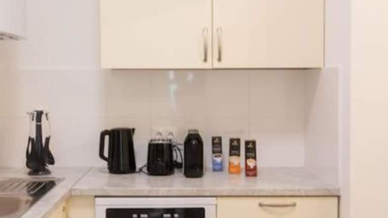 Die Ferienwohnung verfügt über ein Schlafzimmer, eine Küche mit Kühlschrank und Geschirrspüler, einen Flachbild-TV, sowie einen Sitzbereich und ein Badezimmer mit Dusche. Handtücher und Bettwäsche werden bereitgestellt.