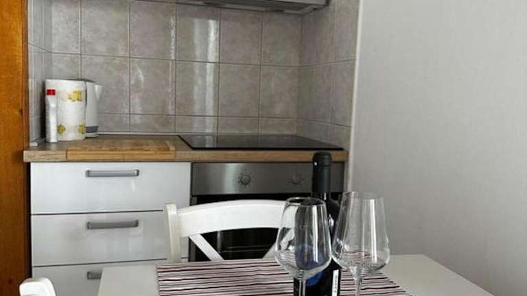 Die Ferienwohnung verfügt über eine voll ausgestattete Küche, die mit einem Kühlschrank und einem Geschirrspüler ausgestattet ist. Es werden keine spezifischen Verpflegungsmöglichkeiten wie Restaurants oder Frühstücksservice angeboten.