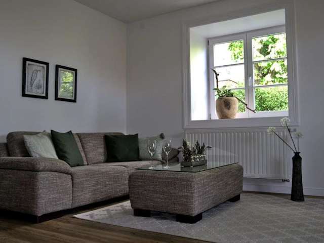 Das Apartment verfügt über ein gemütliches Schlafzimmer, eine voll ausgestattete Küche mit Kühlschrank und Backofen sowie ein modernes Badezimmer mit Dusche. Der Wohnbereich ist mit einem Flachbild-TV und einem bequemen Sitzbereich ausgestattet. Handtücher und Bettwäsche werden gestellt, so dass Sie sich wie zu Hause fühlen können. Von der Terrasse aus können Sie den Blick auf den Garten genießen.