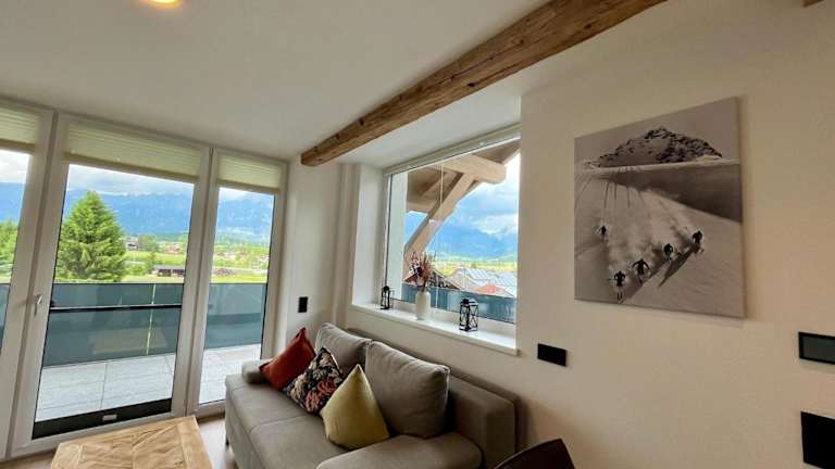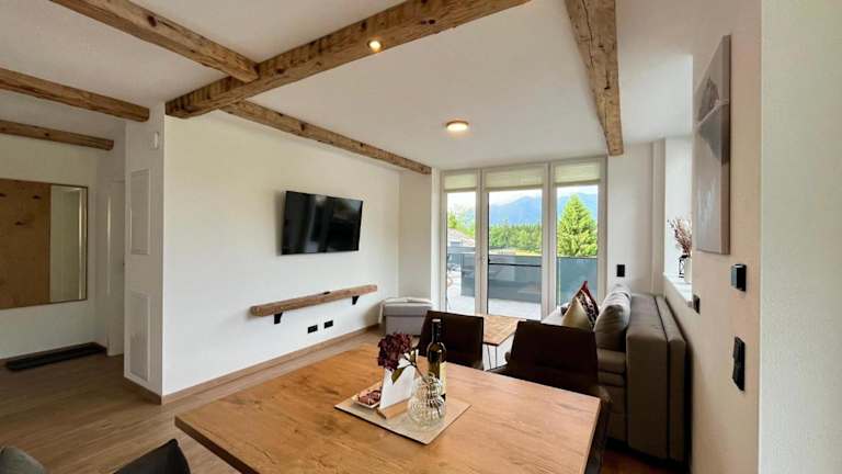 Die Wohnung verfügt über einen Balkon mit Bergblick, 1 Schlafzimmer, ein Wohnzimmer, einen TV sowie eine gut ausgestattete Küche mit Kühlschrank und Geschirrspüler. Es gibt 1 Badezimmer mit Dusche und einen Abstellraum für Skier.