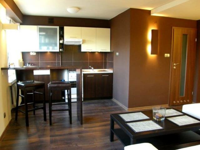 Die moderne Ferienwohnung ist in einer stillen Gasse im Kazimierz, dem faszinierenden einst jüdischem Viertel von Krakau, etwa 15 Min. vom Hauptmarkt. Das komfortables 3-Zimmer-Apartment ist mit allen Bequemlichkeiten des modernen Lebensstandards ausgestattet und lässt Sie Ihren Urlaub voll genießen. Das helle modern eingerichtete Wohnzimmer bietet Ihnen ein bequemes Ecksofa, TVsat, DVD-Recorder, zudem auch Wifi-Internetanschluss. Zwei gemütlichen Schlafzimmer mit Doppelbetten, kleine aber hübsche Küche, die mit allem ausgestattet ist, was man zum Kochen braucht, behagliches Badezimmer (mit Duschkabine und Waschmaschine), zudem hat die Wohnung ein überdachtes Balkon mit Gartenmöbeln.