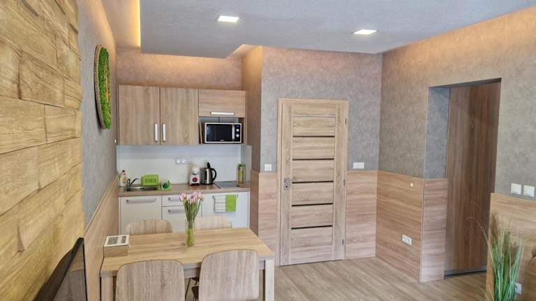 Das Apartment Jasna - Lucky befindet sich in Demänovská Dolina und liegt nur 4,7 km von der beeindruckenden Eishöhle Demänovská entfernt. Die Lage ist ideal für Naturliebhaber und Aktivurlauber, da Sie in der Umgebung wunderbar wandern und skifahren können. Die Unterkunft bietet auch einen direkten Zugang zu den Skipisten, so dass Sie problemlos Ihren Tag auf der Piste verbringen können. Wenn Sie etwas Abwechslung vom Outdoor-Abenteuer suchen, ist der Aquapark Tatralandia nur 17 km entfernt. Der Flughafen Poprad-Tatry liegt etwa 64 km vom Apartment entfernt.