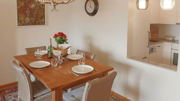 Die Ferienwohnung verfügt über eine Terrasse mit Blick auf die Berge und bietet Annehmlichkeiten wie einen Kabel Flachbild-TV, eine gut ausgestattete Küche mit Kühlschrank, Geschirrspüler und Ofen sowie ein Badezimmer mit Badewanne und Haartrockner.