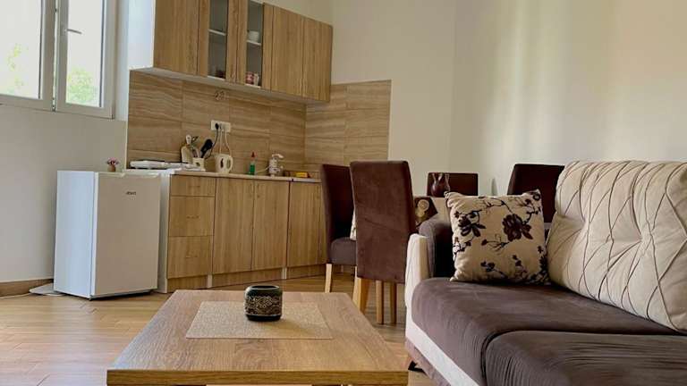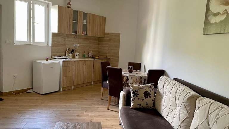 Apartment Jovana ist eine Unterkunft, die Übernachtungsmöglichkeiten in einem entspannenden Umfeld mit einem Garten, einer Gemeinschaftslounge, einer Terrasse und einer Bar zur Verfügung stellt. Es stehen Grillmöglichkeiten für die Gäste bereit.