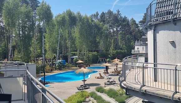 Das Apartment Julia - Baltic View Pobierowo polnische Ostsee ist eine ideale Unterkunft in Pobierowo, nur wenige Gehminuten vom Strand entfernt. Das Apartment bietet einen eigenen Pool, einen Tennisplatz und Grillmöglichkeiten. Genießen Sie den Poolblick vom Balkon aus und entspannen Sie sich im geräumigen Wohnzimmer. Die Küche ist komplett ausgestattet und das Apartment bietet ein komfortables Schlafzimmer sowie ein modernes Badezimmer. Parkplätze stehen kostenfrei zur Verfügung. Nutzen Sie den Kinderspielplatz, den Außenpool und die Terrasse. In der Umgebung können Sie wandern und verschiedene Aussichtspunkte besuchen. Der nächstgelegene Flughafen ist ca. 68 km entfernt.