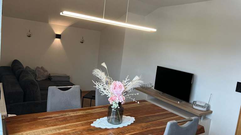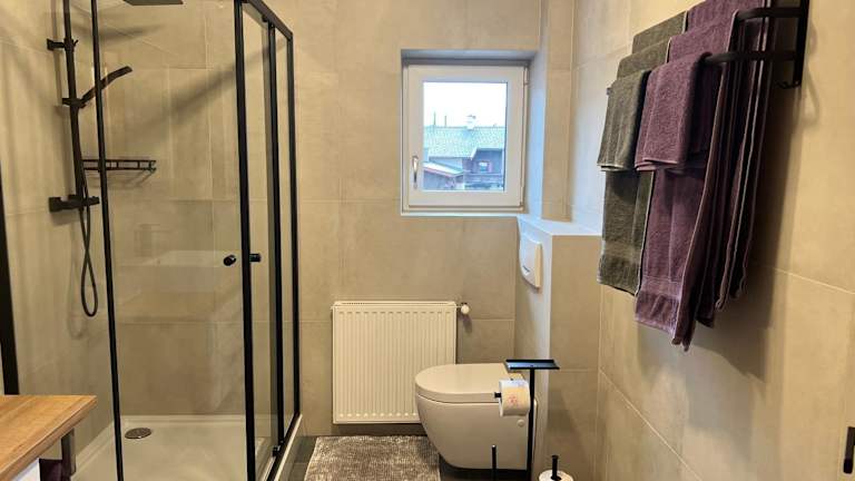 Die Ferienwohnung umfasst 2 Schlafzimmer, ein Wohnzimmer, ein Badezimmer mit Dusche und eine gut ausgestattete Küche mit einem Kühlschrank, Geschirrspüler sowie einen Flachbild-TV. Ein Balkon mit Bergblick ist ebenfalls vorhanden. Handtücher und Bettwäsche werden bereitgestellt.
