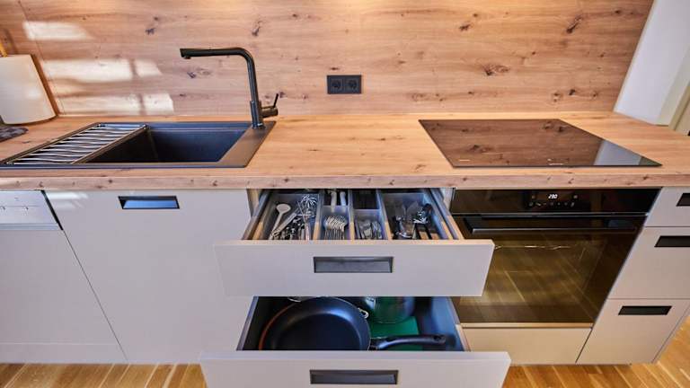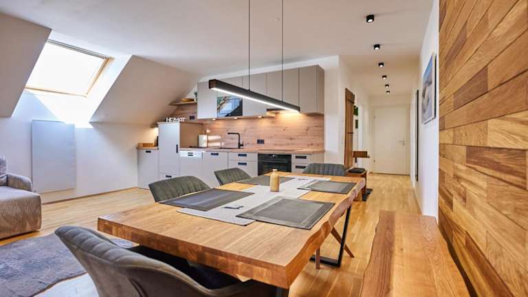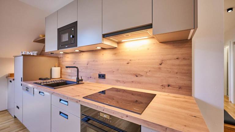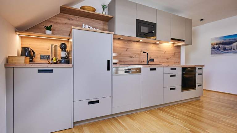 Die Ferienwohnung verfügt über 2 Schlafzimmer, ein Wohnzimmer, einen Flachbild-TV, eine gut ausgestattete Küche mit Kühlschrank und Geschirrspüler sowie 1 Badezimmer mit Dusche. Ein Balkon mit Bergblick sowie die Bereitstellung von Handtüchern und Bettwäsche erhöhen den Komfort.