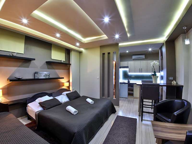Das Hotel bietet klimatisierte Apartments und Zimmer, die allen Komfort bieten, den Sie für einen angenehmen Aufenthalt benötigen. Jedes Apartment verfügt über ein geräumiges Wohn- und Esszimmer sowie eine voll ausgestattete Küche, in der Sie Ihre eigenen Mahlzeiten zubereiten können. Alle Unterkünfte verfügen über Sat-TV und ein eigenes Bad. Einige der Unterkünfte sind zusätzlich mit einem CD- und DVD-Player ausgestattet.