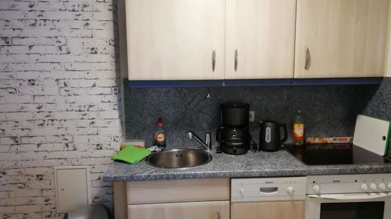 Die Ferienwohnung verfügt über eine gut ausgestattete Küchenzeile mit Kühlschrank, Geschirrspüler und Ofen. Ein Haartrockner ist ebenfalls vorhanden.