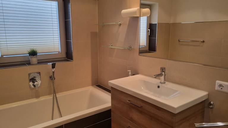 Die Ferienwohnung verfügt über 2 Schlafzimmer, ein Wohnzimmer, einen Satelliten Flachbild-TV und eine gut ausgestattete Küche. Ein Badezimmer mit Dusche und Badewanne ist ebenfalls vorhanden. Handtücher und Bettwäsche werden bereitgestellt.