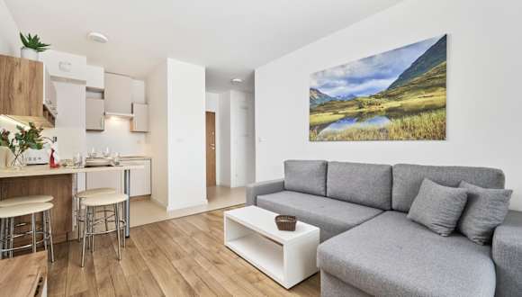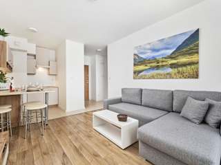 Das Apartment besteht aus einem Schlafzimmer, einem Wohnzimmer und einer voll ausgestatteten Küchenzeile, die mit einem Kühlschrank und einem Wasserkocher ausgestattet ist. Zudem gibt es ein Badezimmer mit einer Dusche, in dem kostenlose Pflegeprodukte bereitgestellt werden. Handtücher und Bettwäsche sind in der Ferienwohnung ebenfalls verfügbar.