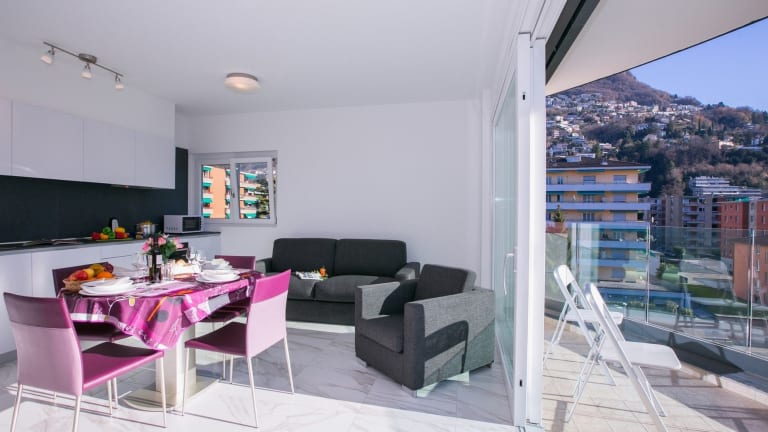 Stellen Sie sich vor, Sie machen Urlaub in dieser fabelhaften Wohnung mit einem Schlafzimmer für 4 Personen in Lugano! Leicht erreichbar und ideal für Aufenthalte das ganze Jahr über und für sorglose Städtereisen bietet diese großzügige, offene Wohnung eine moderne Basis, um das Beste aus dieser Weltklasse-Seestadt zu machen. Intern profitiert diese Wohnung von einer Fußbodenheizung, einem Flachbild -TV, einer voll ausgestatteten Küche mit Essbereich und einem sonnigen, privaten Balkon. Flexible Schlafmöglichkeiten können mit dem schicken Doppelzimmer mit Zugang zum Balkon und einem Doppelschlafsofa im Wohnraum ebenfalls genossen werden. Ein schickes Bad und eine Waschküche sind auch vorhanden und die Residenz selbst profitiert von einem Aufzug, Parkplätzen und einem Fitness-Studio. Das moderne 7-stöckige Gebäude bietet unmittelbare Nähe zu einer Vielzahl an lokalen Annehmlichkeiten wie dem schönen Parco Civico, dem Freibad und Tennis Club (11 Minuten zu Fuß entfernt) und auch das pulsierende, moderne See-Zentrum von Lugano, wo Geschäfte, kulturelle Sehenswürdigkeiten, Universitäten, Hochschulen und Geschäftsbereiche warten. Die schöne Stadt Lugano bietet den perfekten Rahmen für einen kosmopolitischen Rückzug am See mit mondänen Restaurants, Designerläden, kulturellen Museen, Kunstgalerien, Sportaktivitäten, einem pulsierenden Nachtleben und vielen Attraktionen vor der Haustür. Diese Annehmlichkeiten werden durch atemberaubende Tessiner Wanderrouten, nahe gelegene Skigebiete und große Seeattraktionen ergänzt, welche in der umliegenden Schweizerisch-Italienischen Seenregion existieren. Lugano ist mit dem Zug, der Fähre, dem Bus, Flugzeug und Auto leicht zu erreichen, mit einem zentralen Bahnhof im Zentrum, Lugano Flughafen (21 Autominuten), häufigen öffentlichen Verkehrsverbindungen und schneller Verkehrsanbindung an den Comer See (40 Minuten entfernt). Entspannung Offenes Wohnzimmer • Ein kühles und modernes Interieur mit Zugang zum Balkon • Ausgestattet mit einem schicken Sofa und stilvoller Küche • Flachbild -TV, Fußbodenheizung und die Möglichkeit ein WIFI-Gerät zu mieten (für 35 Euro) Essen Offene Küche • Eine intelligente, moderne Küche mit einem Herd, Backofen, Mikrowelle, Wasserkocher, Kaffeemaschine, Kühlschrank mit Gefrierfach und Geschirrspüler. • Der schicke Essbereich für 4 Personen befindet sich im sonnigen, schicken Wohnraum • Nähe zu einer Vielzahl an lokalen Restaurants Schlafen Die moderne Wohnung ist perfekt für ein Paar oder eine flexible Familiengruppen von 4+ Personen geeignet. Hauptschlafzimmer • Ein elegantes und geräumiges Schlafzimmer mit Zugang zum Balkon • Verfügt über ein Doppelbett und Kleiderschrank Extra • ein Doppelschlafsofa im Wohnraum, sollten 1-2 weitere Gäste bleiben wollen • Für größere Gruppen gibt es extra Kinderbetten und Erwachseneneinzelfeldbetten, die auch gemietet werden können (gegen Gebühr) Baden Badezimmer 1 • Ein modernes Badezimmer mit einer Badewanne, Dusche, Waschbecken, WC und Bidet Zusätzlich Neben Fußbodenheizung und Zentralheizung bietet die Wohnung weitere Vorteile, wie die private Waschküche. Gegen einen Aufpreis kann auch ein WIFI-Gerät zur Verfügung gestellt werden. Die Wohnung im 4. Stock kann gemütlich über einen Aufzug erreicht werden. Das moderne 7-stöckige Gebäude profitiert ebenfalls von einem exklusiven Fitness-Studio. Parken Es gibt hier eine Garage die unsere Gäste nutzen können. Lage Die Urlaubswohnung liegt in einem modernen, zentral gelegenen Gebäude. Mit seiner Lage ist es für Gäste einfach, die touristischen Attraktionen, Bildungseinrichtungen, Verkehrsverbindungen und Geschäftszentren von Lugano zu erreichen. Die Wohnung, mit ihrer beneidenswerten Lage liegt nur 7-10 Minuten zu Fuß von Luganos beliebtem Freibad, seinem schönen See, dem Parco Civico mit Kunstmuseum und einer Vielzahl an Designer-Läden, Restaurants, schicke Bars und kulturellen Sehenswürdigkeiten. Lugano ist ein Paradies für Shopper und bietet Designer-Einkaufsstraßen, Antiquitätenläden, traditionelle Märkte und moderne Einkaufszentren. Beliebte Attraktionen und Aktivitäten sind auch Ausflüge in das Museo Civico di Belle Arti, das Museo Cantonale d'Arte, das Museo Cantonale di Storia Naturale, das familienfreundliche Freibad di Lugano, zum Tennisclub, zur Cattedrale di San Lorenzo und eine Fülle an umliegenden Wanderwegen (einschließlich Monte Bré und entlang des Olive Trail von Gandria Lugano), charmante, von Cafés umsäumte Plätze, idyllische Uferpromenaden, Panoramablicke und malerische Bootsfahrten, welche auch eine zusätzliche Dosis italienischer Romantik bieten. Dies sorgt für einen wirklich einzigartigen und entspannten Aufenthalt in der Schweizer Seestadt. Lugano ist sehr gut mit seinen Fähren, Bussen, Straßen, Bahnen und Flughafenverbindungen angeschlossen. Die Wohnung selbst ist nur eine 5-minütige Fahrt mit dem Taxi vom Lugano Hauptbahnhof und 15 Minuten Taxifahrt vom Flughafen Lugano entfernt, somit ist es die perfekte Wahl für diejenigen, die versuchen, das Auto zu Hause zu lassen. Wenn Sie mit dem Auto reisen, bietet die stilvolle Wohnung einen eigenen Parkplatz. Der Golf Club, die vielen touristischen Attraktionen im Tessin und der schöne, zentrale Comer See (mit Menaggio, das mit dem Auto nur 45 Minuten entfernt liegt) sind mit dem Auto leicht zu erreichen.