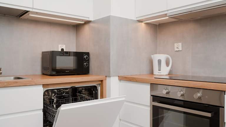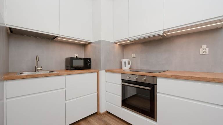 Die Ferienwohnung besteht aus einem Schlafzimmer, einem Wohnzimmer und einer voll ausgestatteten Küche mit Kühlschrank und Wasserkocher. Das Badezimmer ist mit einer Dusche und einem Haartrockner ausgestattet. Handtücher und Bettwäsche werden bereitgestellt.