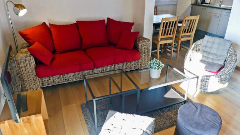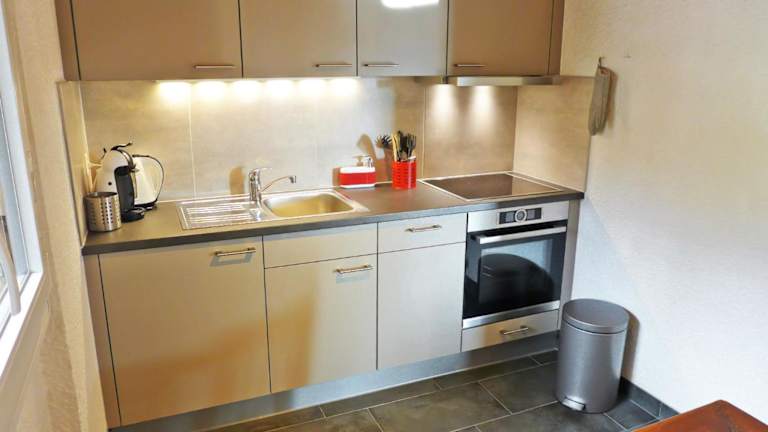 Die Ferienwohnung verfügt über ein Schlafzimmer, einen TV, eine gut ausgestattete Küche mit Kühlschrank und Geschirrspüler sowie ein Badezimmer mit Badewanne.