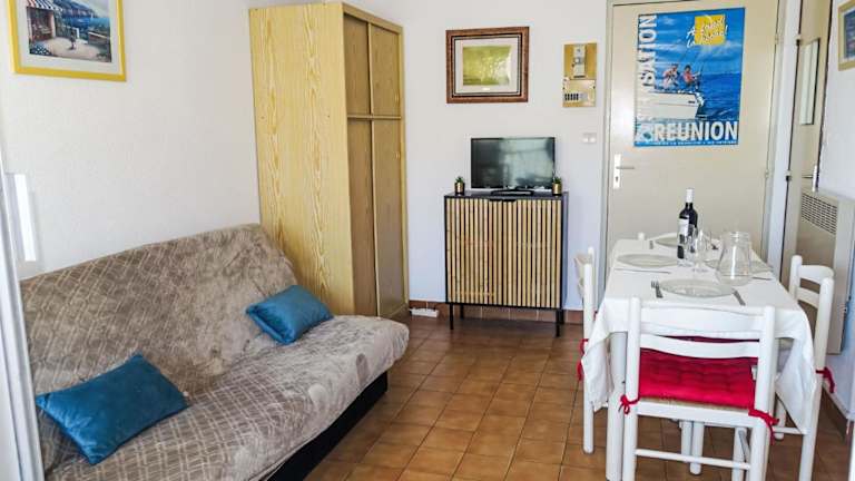 Apartment Les Maisons sur la Plage-3 by Interhome bietet ein komfortables Ambiente mit einem saisonalen Außenpool und kostenlosem Privatparkplatz. Das Apartment verfügt über einen Balkon mit Blick auf den Pool und besteht aus einem Schlafzimmer, einem Wohnzimmer sowie einer gut ausgestatteten Küchenzeile.