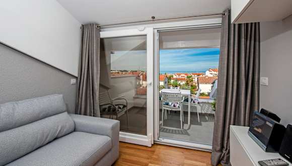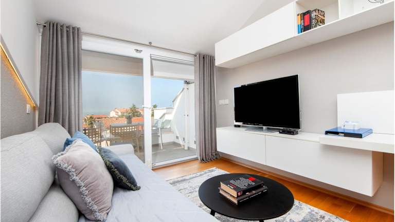 Das Apartment Lili ist ein helles und modernes Apartment mit einem Schlafzimmer. Es verfügt über eine voll ausgestattete Küche mit einem Esstisch und ein Wohnzimmer mit einem Flachbild-Sat-TV. Das Apartment ist klimatisiert und bietet einen möblierten Balkon, von dem aus Sie einen herrlichen Blick auf das Meer genießen können. Handtücher und Bettwäsche werden gestellt und das Badezimmer verfügt über eine Dusche.