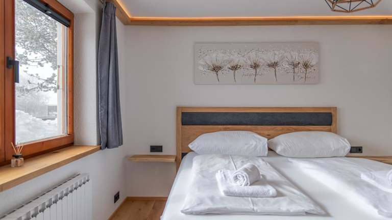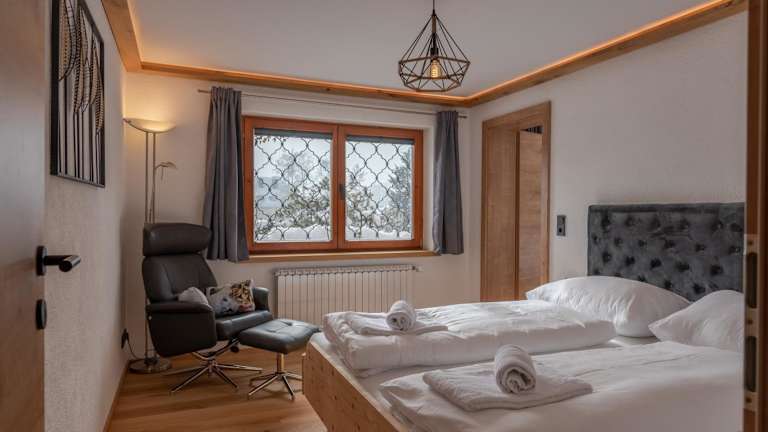 Die Ferienwohnung verfügt über 2 Schlafzimmer, ein Wohnzimmer mit einem Flachbild-TV sowie eine gut ausgestattete Küchenzeile, die mit einem Kühlschrank und einem Geschirrspüler ausgestattet ist. Des Weiteren stehen den Gästen 1 Badezimmer mit Dusche zur Verfügung. Handtücher und Bettwäsche sind in der Unterkunft verfügbar. Eine Terrasse mit Bergblick ergänzt die Ausstattung.