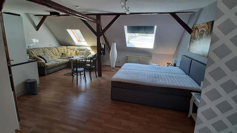Das Hotel Apartment Lutherrose liegt zentral in der historischen Lutherstadt Eisleben. Der Bahnhof ist nur 5 Fahrminuten entfernt, was eine bequeme Anreise ermöglicht. In der Umgebung finden Sie verschiedene Restaurants, Bars und einen Supermarkt, der nur 1,5 km entfernt liegt. Die Stadt Halle ist ein lohnenswertes Ziel für einen Tagesausflug und kann in nur 45 Minuten mit dem Auto erreicht werden. Die Umgebung bietet auch viele Möglichkeiten zum Wandern und Radfahren.