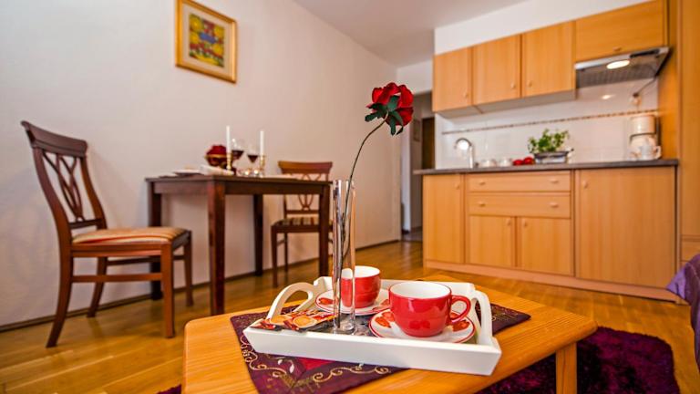 Das Apartment besteht aus einem Schlafzimmer, einem Wohnzimmer und einer voll ausgestatteten Küche, die mit einem Kühlschrank sowie einer Kaffeemaschine ausgestattet ist. Darüber hinaus sind ein Badezimmer mit Badewanne und kostenlosen Pflegeprodukten sowie allergikerfreundliche Zimmer verfügbar. Es werden Zustellbetten angeboten.