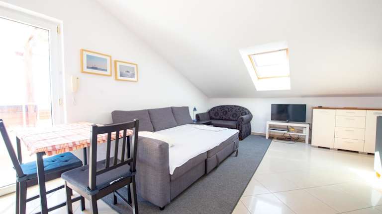 Die Ferienwohnung umfasst 1 Schlafzimmer, ein Wohnzimmer mit einem Flachbild-TV, eine voll ausgestattete Küche mit Kühlschrank und 1 Badezimmer mit Dusche. Handtücher und Bettwäsche werden bereitgestellt.