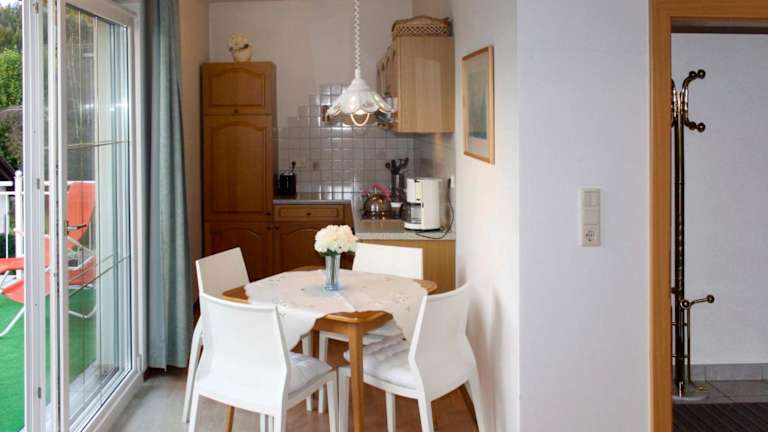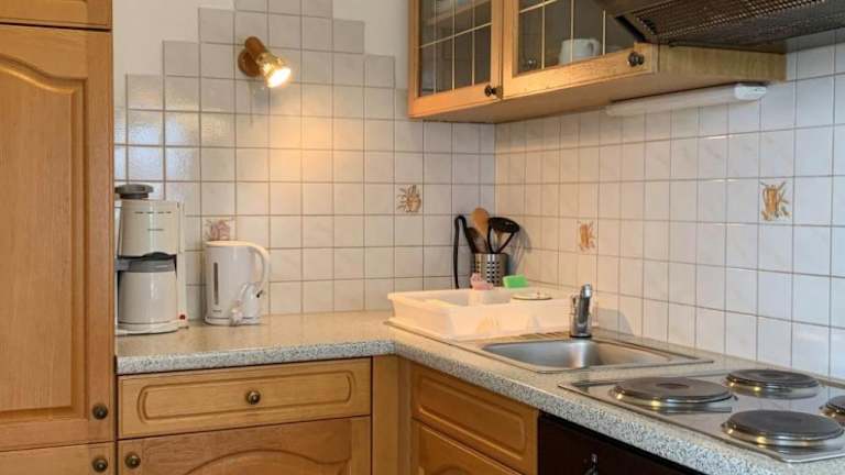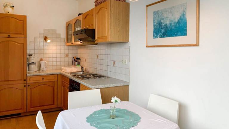 Die Ferienwohnung verfügt über ein Schlafzimmer, ein Wohnzimmer, ein Badezimmer mit Dusche und eine Küche mit Kühlschrank und Ofen. Ein Babybett kann kostenfrei bereitgestellt werden.