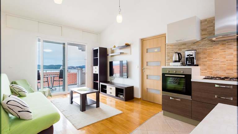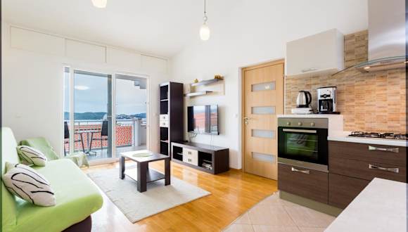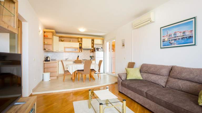 Apartment Mia bietet eine großzügige Wohnfläche von 85 m² mit einem atemberaubenden Blick auf das Meer. Die Unterkunft umfasst eine Terrasse sowie Möglichkeiten zur Freizeitgestaltung wie Grillen im Garten. Der Check-in ist ab 14:00 Uhr und der Check-out bis 10:00 Uhr möglich. Es handelt sich um eine privat geführte Unterkunft, in der Haustiere nicht gestattet sind. Zahlung per Überweisung ist erforderlich, und besondere Wünsche sollten vorab mitgeteilt werden.