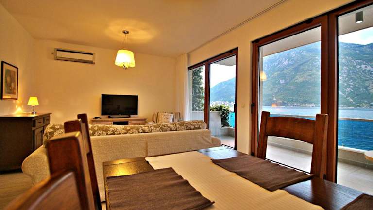 Das Apartment MiraMare liegt direkt am Ufer in der Bucht von Kotor, die zum UNESCO-Welterbe gehört. Der Strand ist nur wenige Schritte entfernt, so dass Sie die Möglichkeit haben, die malerische Landschaft und das kristallklare Wasser zu genießen. In der Nähe finden Sie auch die charmante Altstadt von Perast, die mit dem Auto in nur 25 Minuten erreichbar ist. Der Flughafen Tivat ist ebenfalls nur 8 km entfernt, so dass Sie schnell und bequem anreisen können.