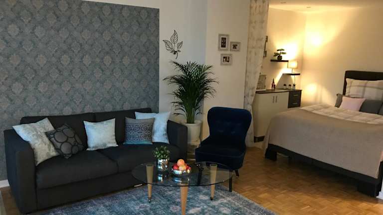 Das Apartment beinhaltet 1 Schlafzimmer, ein Wohnzimmer mit einem Flachbild-TV, eine gut ausgestattete Küche mit Kühlschrank und Geschirrspüler sowie ein Badezimmer mit Dusche. Handtücher und Bettwäsche werden bereitgestellt.