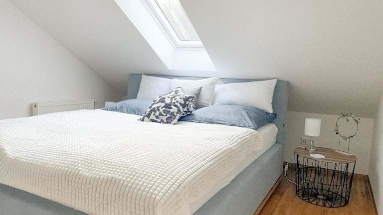 Die Ferienwohnung umfasst 2 Schlafzimmer, ein Wohnzimmer und ein Badezimmer mit einem Bidet. Darüber hinaus steht ein Flachbild-TV zur Verfügung. In der gut ausgestatteten Küchenzeile befinden sich ein Kühlschrank und ein Geschirrspüler. Handtücher und Bettwäsche werden bereitgestellt.