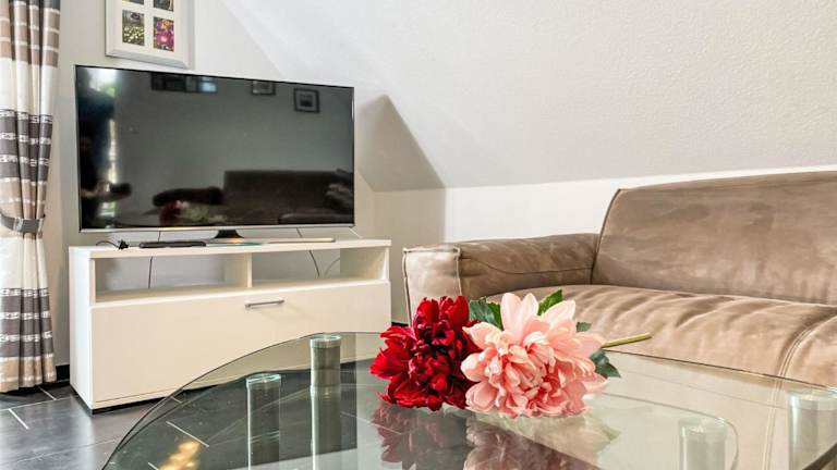 Die Ferienwohnung bietet 2 Schlafzimmer, ein Badezimmer mit Dusche, eine gut ausgestattete Küchenzeile mit Kühlschrank und Geschirrspüler sowie einen Fernseher mit Satellitenkanälen. Handtücher und Bettwäsche können gegen zusätzliche Gebühr gemietet werden oder von den Gästen selbst mitgebracht werden. Es ist zu beachten, dass nicht alle Zimmer im Hauptgebäude liegen und diese nicht intern verbunden sind.