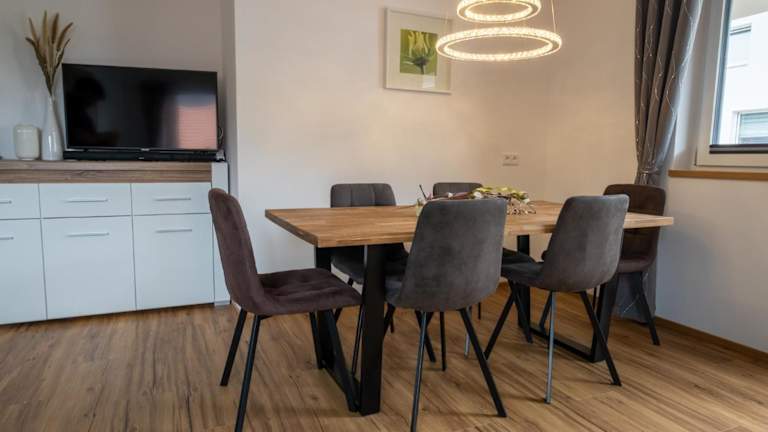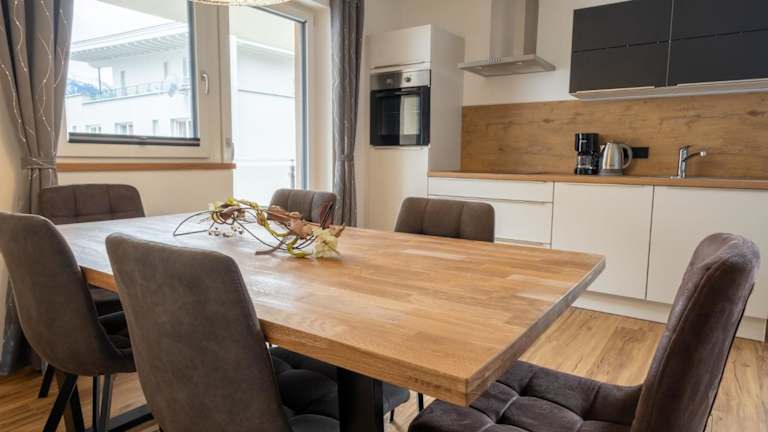 Das Apartment verfügt über eine gut ausgestattete Küche, in der Sie Ihre eigenen Mahlzeiten zubereiten können. Genießen Sie Ihr Essen auf dem Balkon und lassen Sie sich von der beeindruckenden Bergkulisse inspirieren. Alternativ finden Sie in der Umgebung verschiedene Restaurants und Cafés, in denen Sie lokale Spezialitäten probieren können.