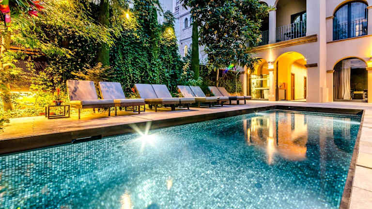 Das Hotel verfügt über eine Gartenterrasse mit einem kleinen Pool, auf der Sie sich entspannen und die Sonne genießen können. Das freundliche Personal an der Rezeption steht Ihnen auch gerne zur Verfügung, um Informationen über Girona und die nahe gelegene Costa Brava zu geben.